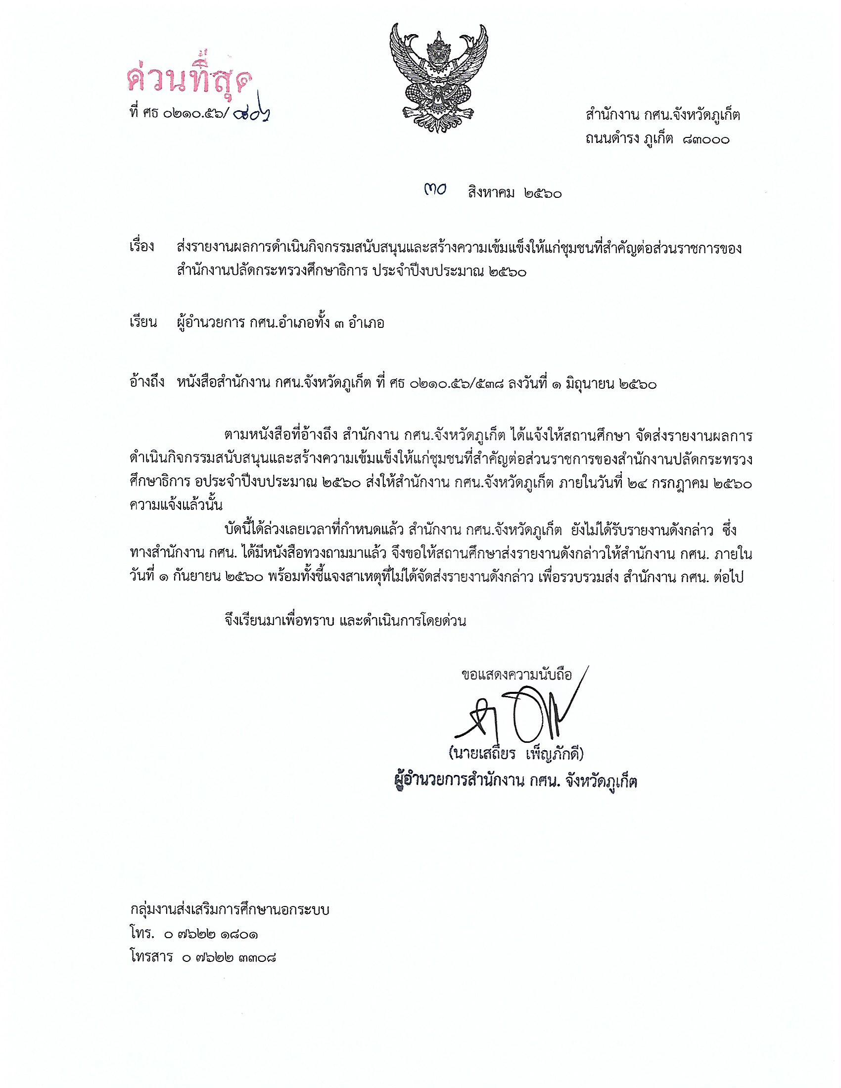เรื่อง ส่งรายงานผลการดำเนินกิจกรรมสนับสนุนและสร้างความเข้มแข็งให้แก่ชุมชนฯ
