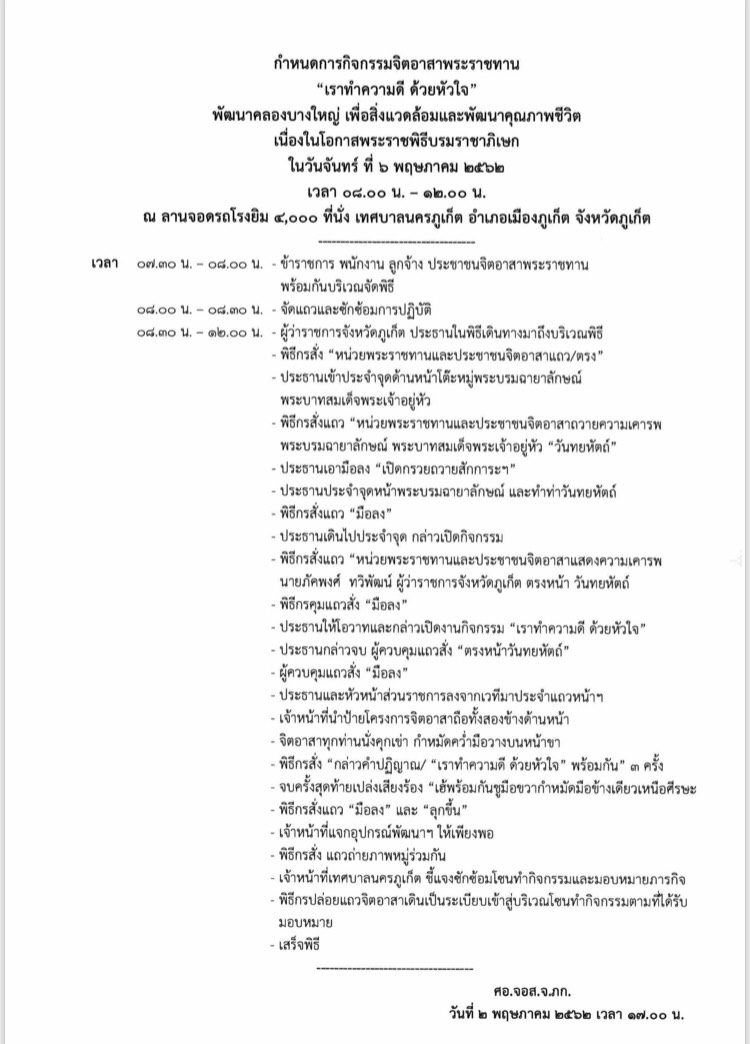 เรื่อง ขอเชิญร่วมกิจกรรมเนื่องในการพระราชพิธีบรมราชาภิเษกจังหวัดภูเก็ต