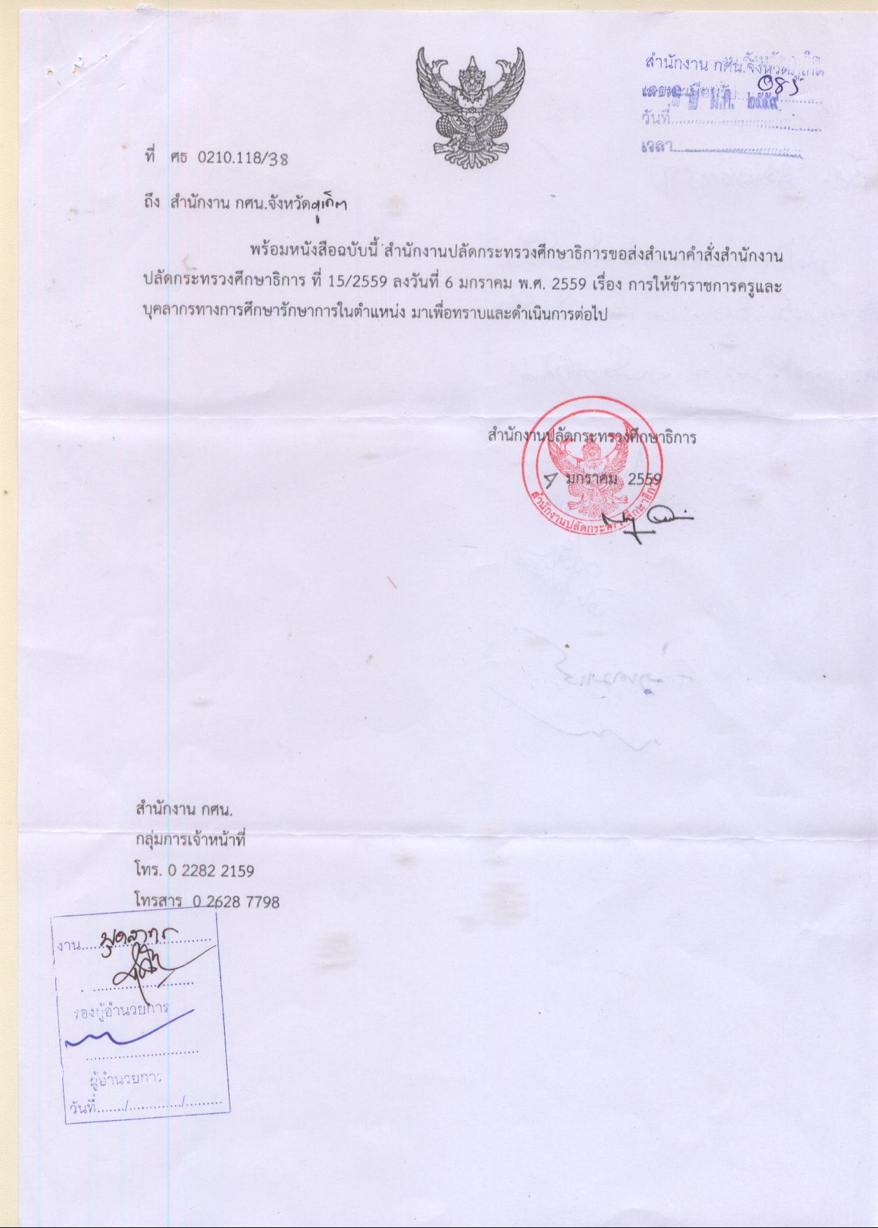 สป.ศธ.ได้ออกคำสั่งแต่งตั้งผู้รักษาการ ผอ.สนง.กศน.จ.ภูเก็ตเป็นการล่วงหน้าใหม่ ดังแนบ