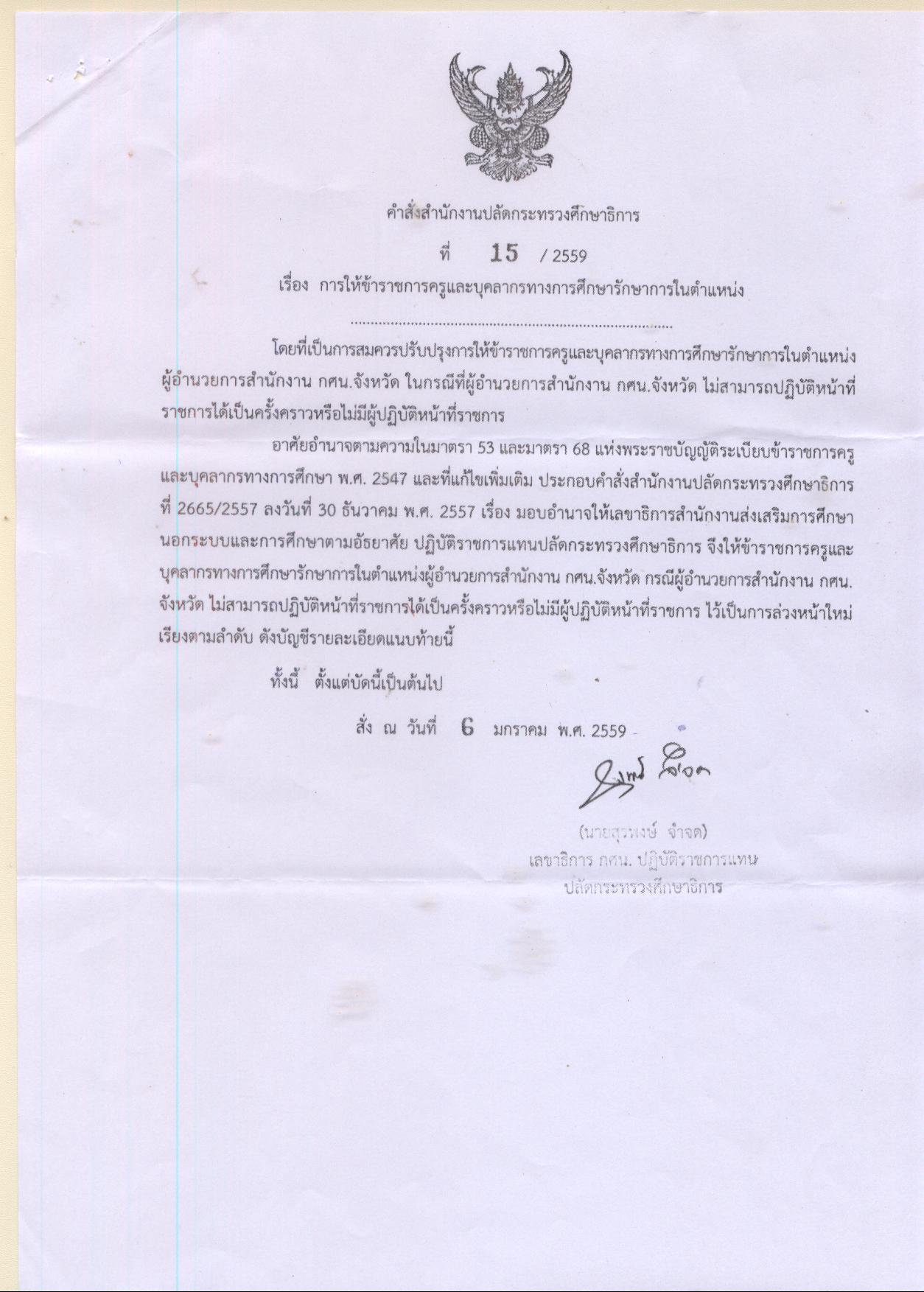 เรื่อง การให้ข้าราชการครูและบุคลากรทางการศึกษารักษาการในตำแหน่ง