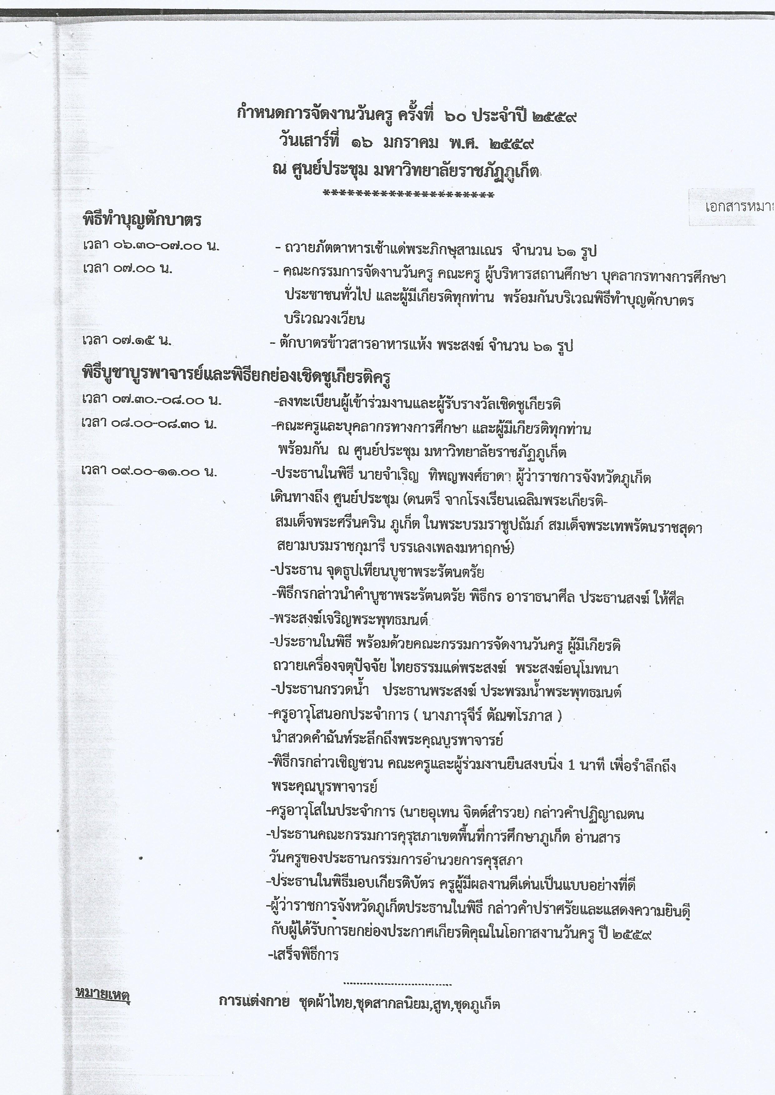เรื่อง การจัดงานวันครู ครั้งที่ ๖๐ พ.ศ.๒๕๕๙