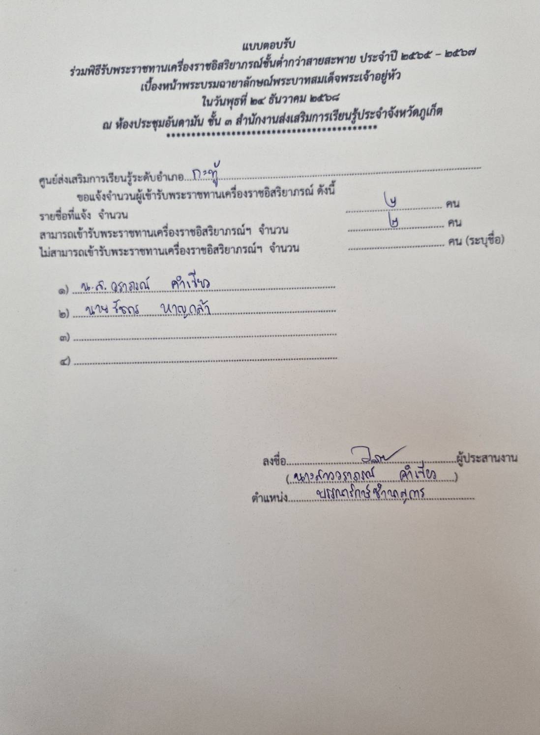 เรื่อง การเข้าร่วมพระราชทานเครื่องราชอิสริยาภรต่ำกว่าสายสะพายประจำปี 2565-2567