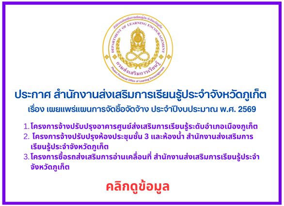 ประกาศ สำนักงานส่งเสริมการเรียนรู้จังหวัดภูเก็ต 25 / พ.ย. / 2568